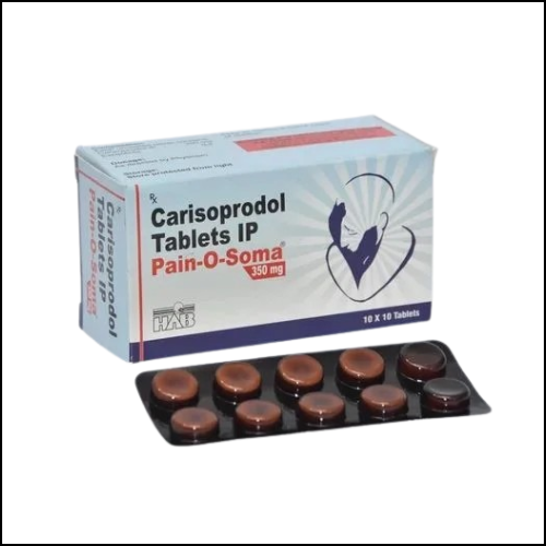 Soma 350mg (Carisoprodol) is a prescription muscle relaxant commonly used to treat muscle pain and discomfort caused by strains, sprains, or other musculoskeletal conditions. It works by blocking pain sensations between the nerves and the brain.